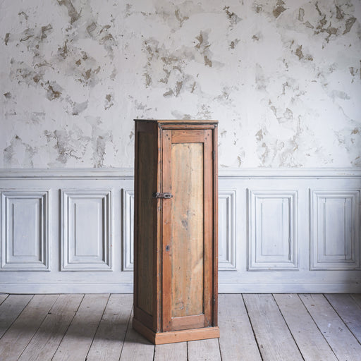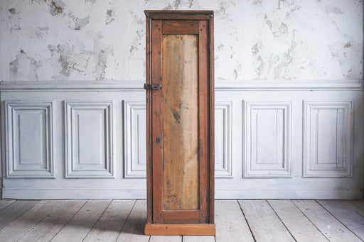 Antique Shop IWAREフランスで買い付けた、無骨で渋みのあるナロータイプのワードローブキャビネット。 時を経た木材の風合いが静かな存在感を放ち、武骨なアイアン製のロックパーツが実用性と装飾性を兼ね備えています。 高さがありながら奥行きは浅く、空間を圧迫せずに収納力を確保できる絶妙なバランス。 棚板はしっかりと奥行き...