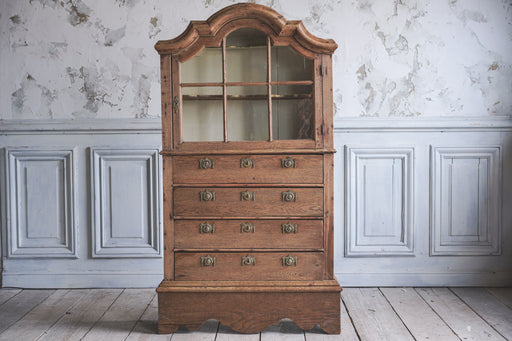 Antique Shop IWARE曲線を描くクラウンと、9杯の引き出しを備えた下段が印象的な、ショーケースキャビネット。 イギリス〜フランス圏で19世紀後半〜20世紀初頭にかけてつくられたと推定されます。 素朴なオーク材の風合いと歪みを含んだ古いガラスの表情が相まって、圧迫感はありません。 内部は棚板が付き、縁に金彩装飾が施さ...