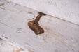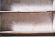 棚板には長年置かれていた瓶や道具の跡が残り、使い込まれた木肌とペイントの層が、オブジェとしての存在感を際立たせます。