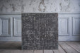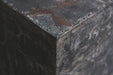 打ち付けられた無数のリベット跡と表面の錆びが、経年変化による独特の風合いを生み出しています。スツールやディスプレイ台、什器としても使いやすく、存在感がありながらも空間に馴染む静けさをもっています。