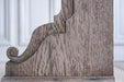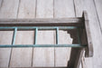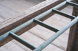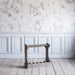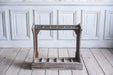 6本分の収納スロットを備えた実用的な設計でありながら、装飾的なサイドのカーヴや端正なシルエットが、空間に格調を添えます。上部の持ち手部分には、経年により剥がれた塗装の味わいが残り、木肌とのコントラストが美しく浮かび上がります。