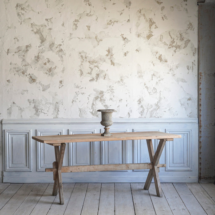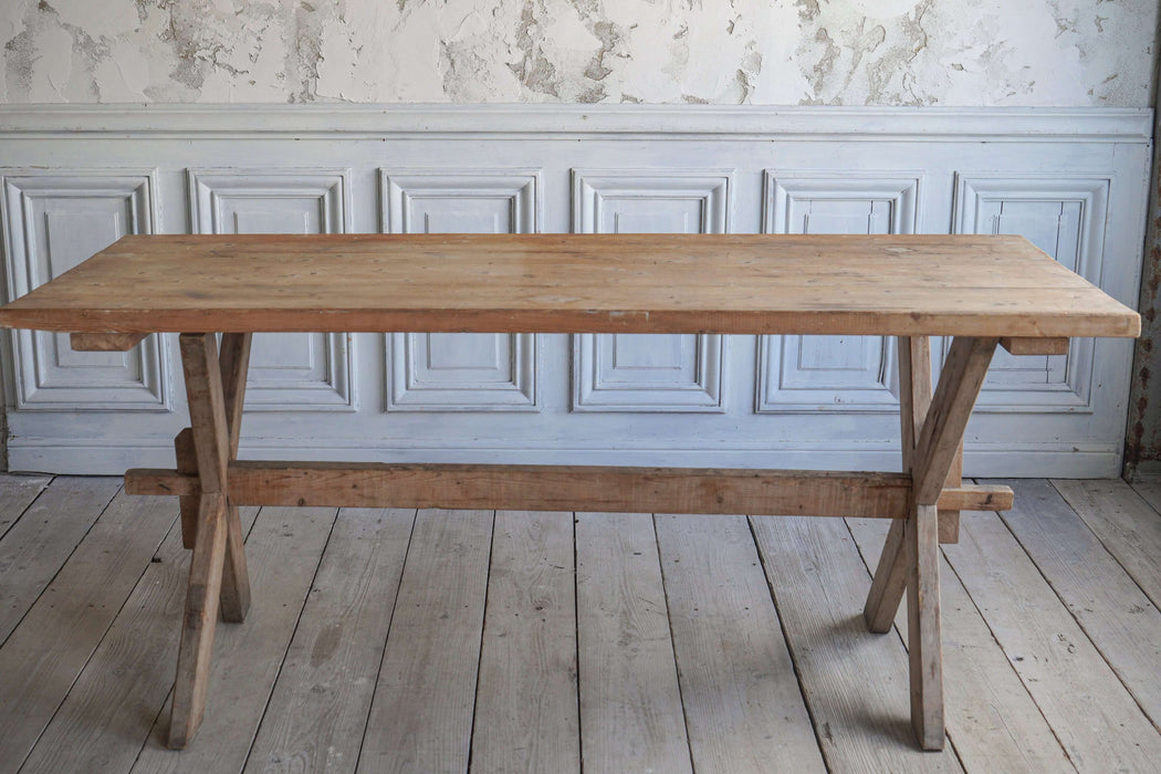 Inheriting the style used in 19th century French farmhouses, the table has an X-shaped leg structure that combines stability with visual beauty.