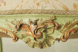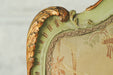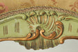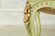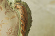淡いグリーンに金彩を重ねたウッドフレームには、貝殻モチーフやアカンサス装飾が立体的に施され、宮廷の一室を思わせる佇まいです。