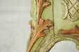 淡いグリーンを基調とした塗装に、金彩と朱が重ねられた装飾は、時を経て生まれたクラックや擦れによって、唯一無二の風合いに育っています。