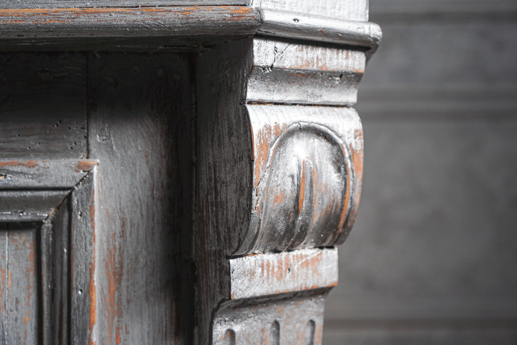 厚みのある天板や力強いモールディングの輪郭は、空間を引き締める重厚さを備えながら、フロントの繊細な装飾が柔らかな印象も添えています。